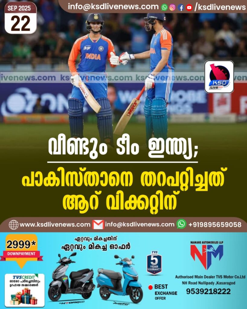 വീണ്ടും ടീം ഇന്ത്യ; പാകിസ്താനെ തറപറ്റിച്ചത് ആറ് വിക്കറ്റിന്