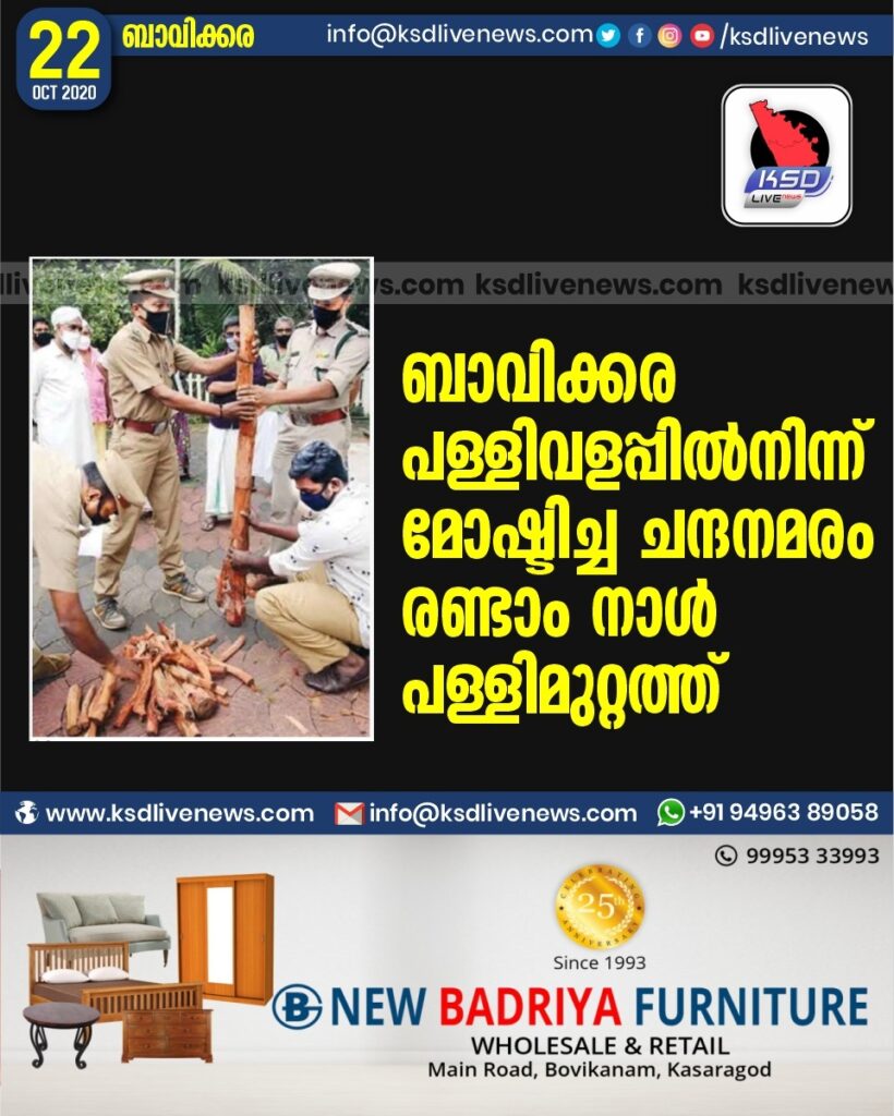 ബാവിക്കര പള്ളിവളപ്പിൽനിന്ന് മോഷ്ടിച്ച ചന്ദനമരം രണ്ടാം നാൾ പള്ളിമുറ്റത്ത്