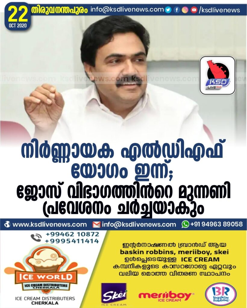 നിർണ്ണായക എൽഡിഎഫ് യോഗം ഇന്ന് ; ജോസ് വിഭാഗത്തിൻറെ മുന്നണി പ്രവേശനം ചർച്ചയാകും