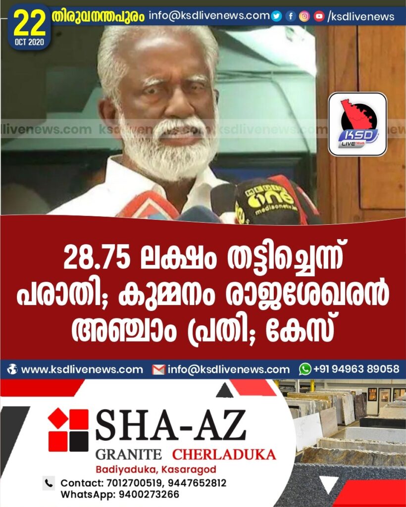 28.75 ലക്ഷം തട്ടിച്ചെന്ന് പരാതി ; കുമ്മനം രാജശേഖരൻ അഞ്ചാം പ്രതി ; കേസ്