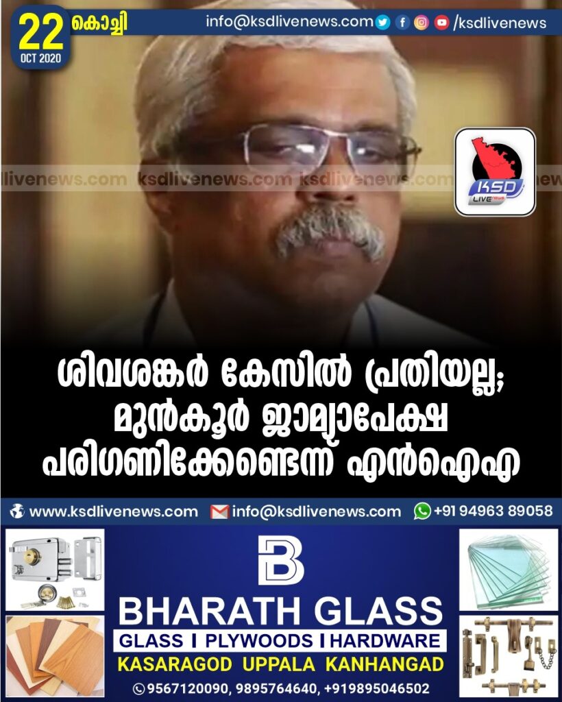ശിവശങ്കർ കേസിൽ പ്രതിയല്ല ; മുൻകൂർ ജാമ്യാപേക്ഷ പരിഗണിക്കേണ്ടെന്ന് എൻഐഎ