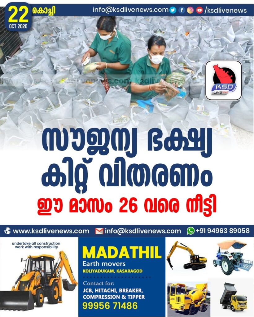 സൗജന്യ ഭക്ഷ്യ കിറ്റ് വിതരണം ഈ മാസം 26 വരെ നീട്ടി