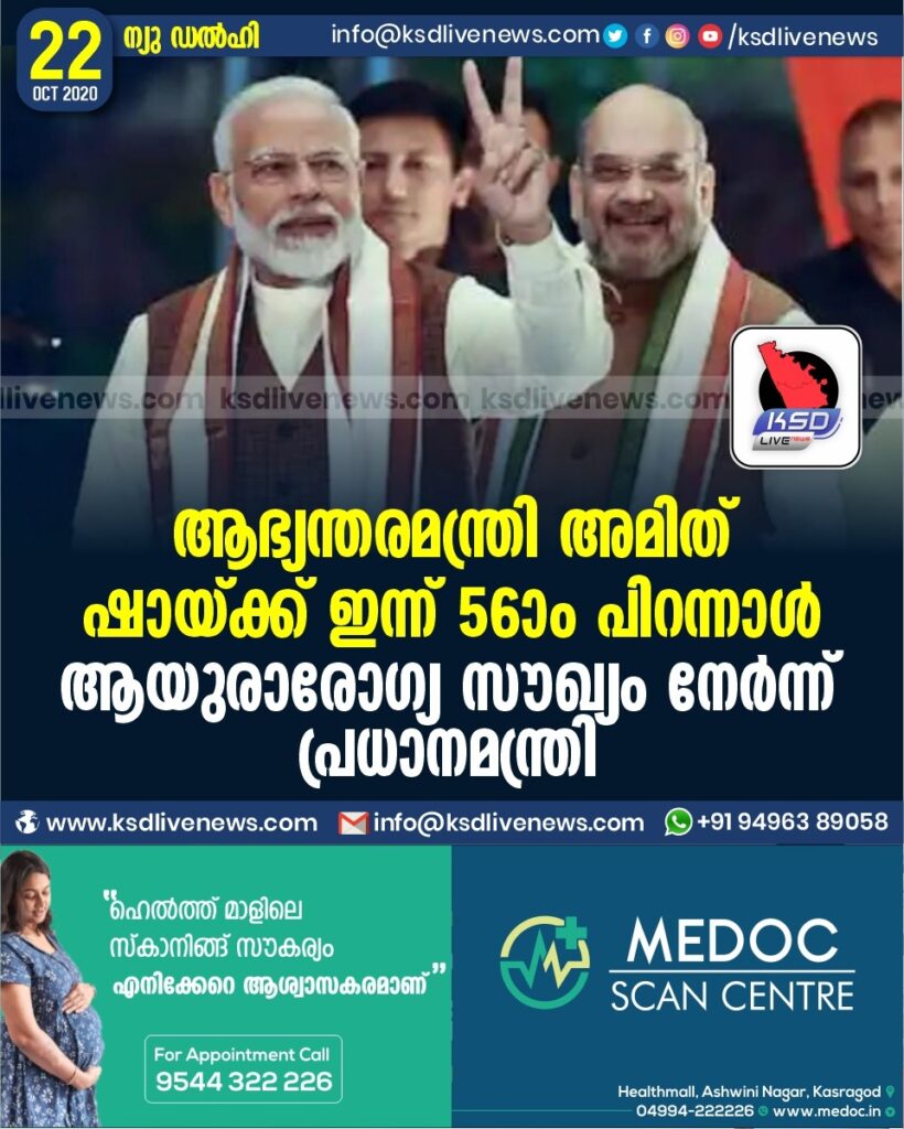 ആഭ്യന്തരമന്ത്രി അമിത് ഷായ്ക്ക് ഇന്ന് 56ാം പിറന്നാൾ , ആയുരാരോഗ്യ സൗഖ്യം നേർന്ന് പ്രധാനമന്ത്രി