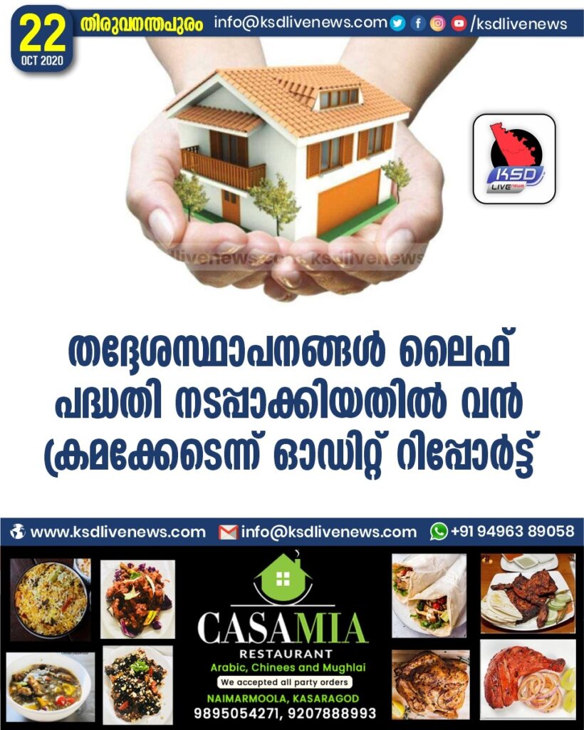തദ്ദേശസ്ഥാപനങ്ങള് ലൈഫ് പദ്ധതി നടപ്പാക്കിയതില് വന് ക്രമക്കേടെന്ന് ഓഡിറ്റ് റിപ്പോര്ട്ട്