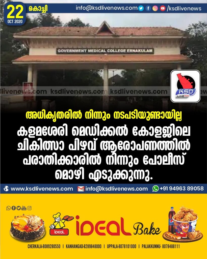 കളമശേരി മെഡിക്കല് കോളജിലെ ചികിത്സാ പിഴവ് ആരോപണത്തില് പരാതിക്കാരില് നിന്നും പോലീസ് മൊഴി എടുക്കുന്നു.