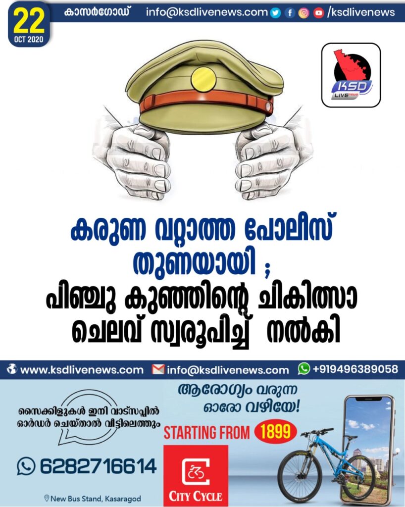 കരുണ വറ്റാത്ത പോലീസ് തുണയായി ; പിഞ്ചു കുഞ്ഞിന്റെ ചികിത്സാ ചെലവ് സ്വരൂപിച്ച് നല്‍കി