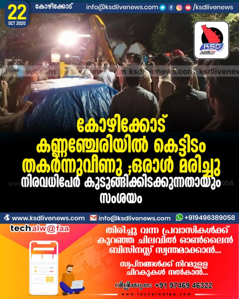 കോഴിക്കോട് കണ്ണഞ്ചേരിയില് കെട്ടിടം തകര്ന്നുവീണു ; ഒരാൾ മരിച്ചു