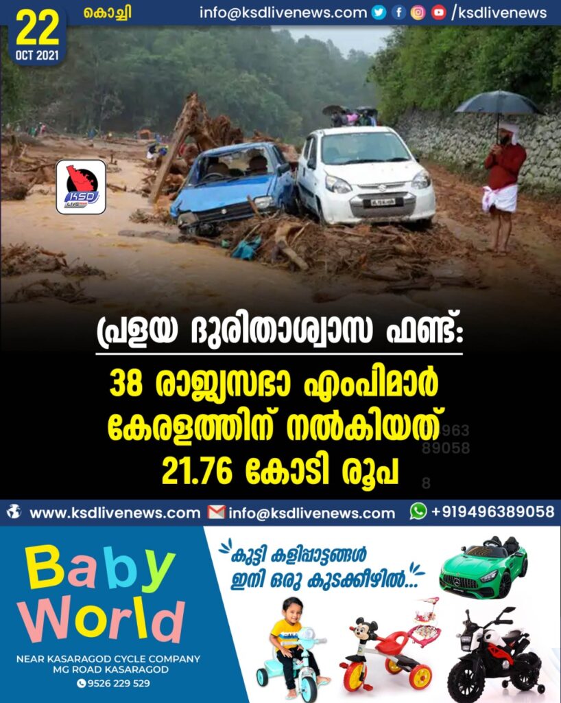 പ്രളയ ദുരിതാശ്വാസ ഫണ്ട്: 38 രാജ്യസഭാ എംപിമാര് കേരളത്തിന് നല്കിയത് 21.76 കോടി രൂപ