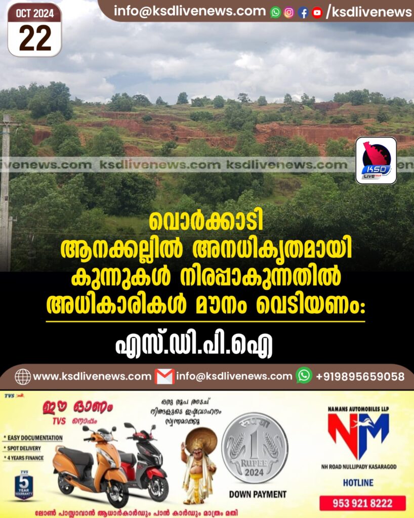 വൊർക്കാടി ആനക്കല്ലിൽ അനധികൃതമായി കുന്നുകൾ നിരപ്പാകുന്നതിൽ അധികാരികൾ മൗനം വെടിയണം: എസ്ഡിപിഐ