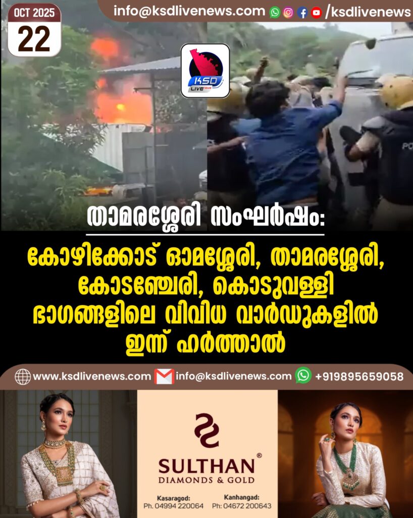 താമരശ്ശേരി സംഘർഷം: കോഴിക്കോട് ഓമശ്ശേരി, താമരശ്ശേരി, കോടഞ്ചേരി, കൊടുവള്ളി ഭാഗങ്ങളിലെ വിവിധ വാർഡുകളിൽ ഇന്ന് ഹർത്താൽ