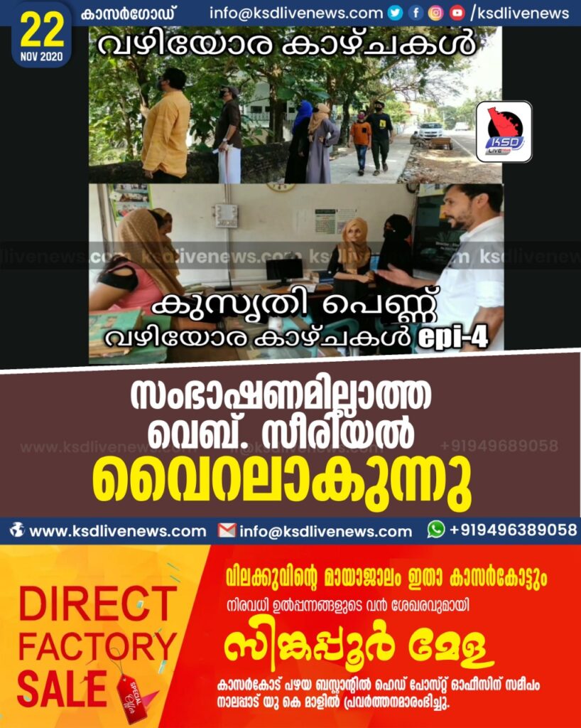 കലാ രംഗത്ത് വിത്യസ്തത പുലർത്തുന്ന കാസർക്കോട്ടുകാർക്ക് അഭിമാനിക്കാൻ പുതിയൊരു സംരംഭവുമായി വെബ്. സീരിയൽ. സംഭാഷണമില്ലാതെ കഥ പറയുന്ന ഇതിന്റെ നിർമ്മാതാക്കൾ ജയനാദം ന്യൂസ്‌ ചാനലാണ്.