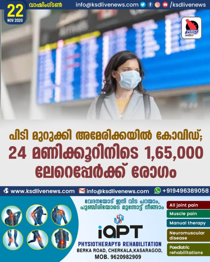 പിടി മുറുക്കി അമേരിക്കയിൽ കോവിഡ് ; 24 മണി ക്കൂറിനിടെ 1,65,000 ലേറെപ്പേർക്ക് രോഗം
