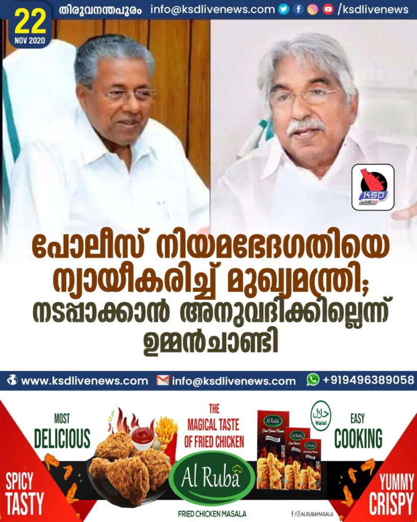 പോലീസ് നിയമഭേദഗതിയെ ന്യായീകരിച്ച് മുഖ്യമന്ത്രി ; നടപ്പാക്കാൻ അനുവദിക്കില്ലെന്ന് ഉമ്മൻചാണ്ടി