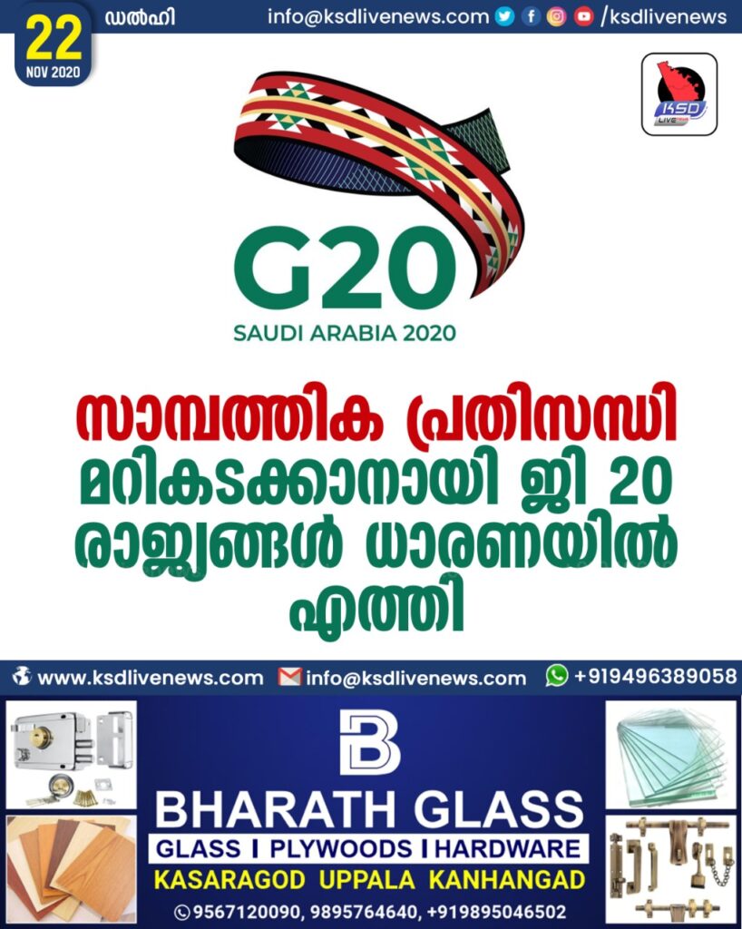 ഡല്ഹി : സാമ്ബത്തിക പ്രതിസന്ധി മറികടക്കാനായി ജി20 രാജ്യങ്ങള് ധാരണയില് എത്തി .