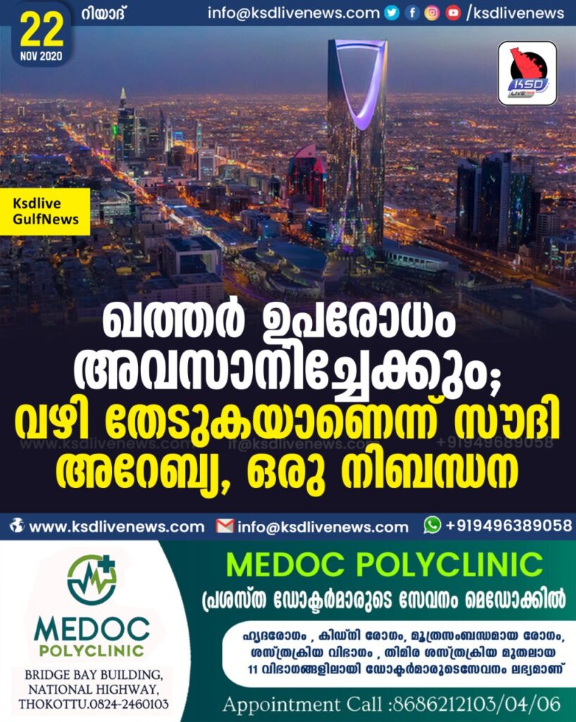 ഖത്തർ ഉപരോധം അവസാനിച്ചേക്കും ; വഴി തേടുകയാണെന്ന് സൗദി അറേബ്യ , ഒരു നിബന്ധന