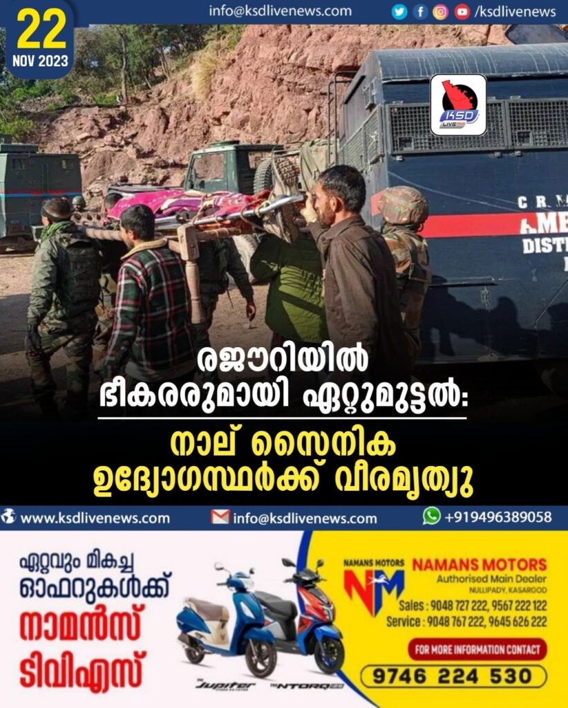 രജൗറിയില്‍ ഭീകരരുമായി ഏറ്റുമുട്ടല്‍: നാല് സൈനിക ഉദ്യോഗസ്ഥര്‍ക്ക് വീരമൃത്യു