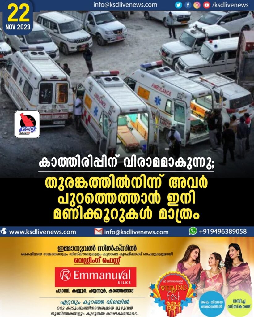 കാത്തിരിപ്പിന് വിരാമമാകുന്നു; തുരങ്കത്തില്‍നിന്ന് അവര്‍ പുറത്തെത്താന്‍ ഇനി മണിക്കൂറുകള്‍മാത്രം