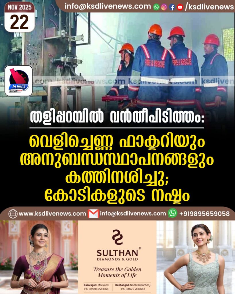 തളിപ്പറമ്പില്‍ വന്‍തീപിടിത്തം: വെളിച്ചെണ്ണ ഫാക്ടറിയും അനുബന്ധസ്ഥാപനങ്ങളും കത്തിനശിച്ചു; കോടികളുടെ നഷ്ടം