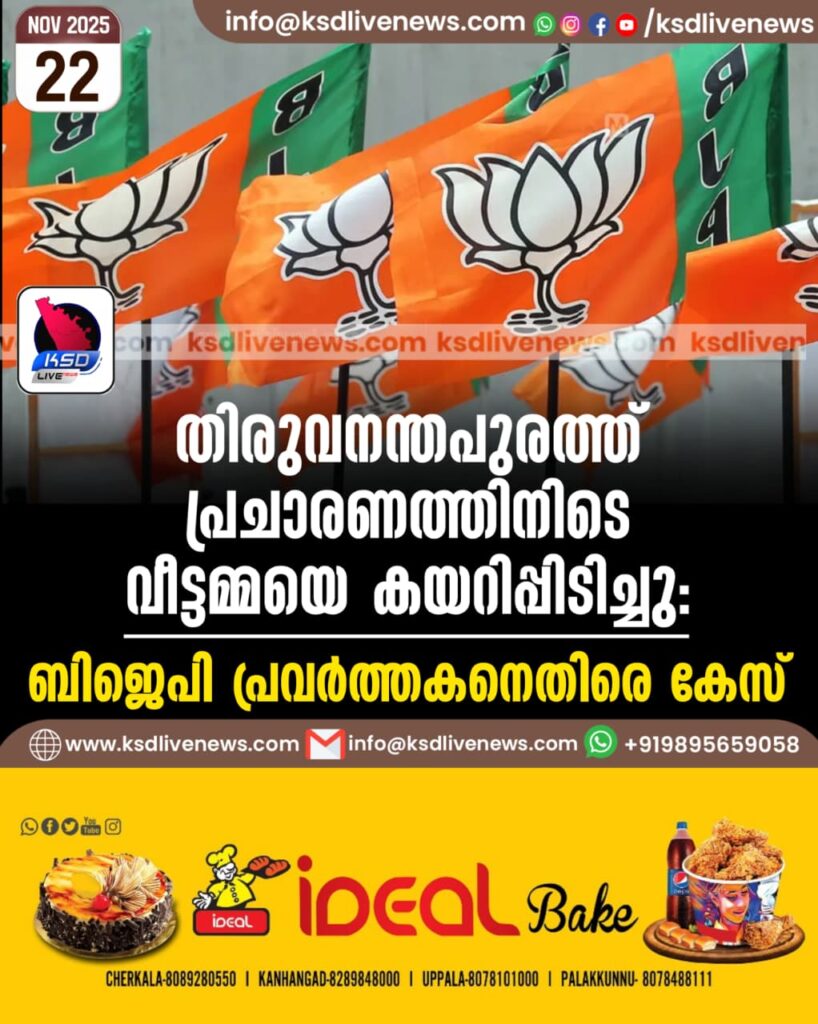 തിരുവനന്തപുരത്ത് പ്രചാരണത്തിനിടെ വീട്ടമ്മയെ കയറിപ്പിടിച്ചു: ബിജെപി പ്രവർത്തകനെതിരെ കേസ്