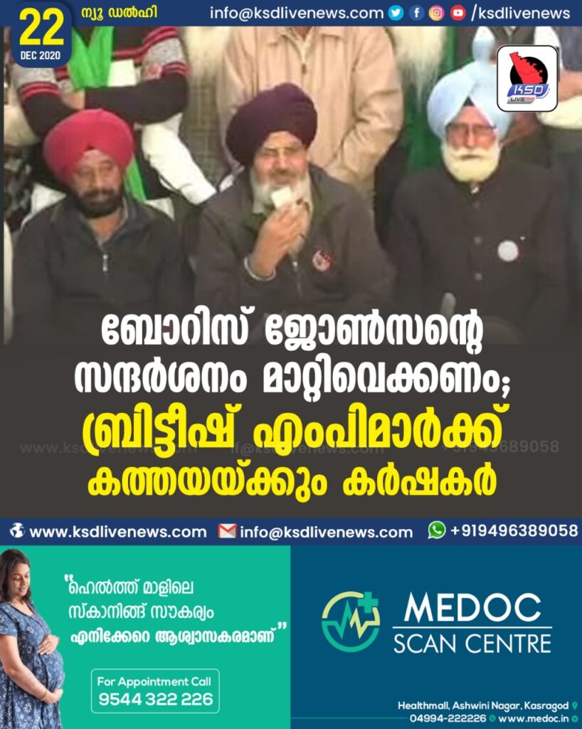 ബോറിസ് ജോണ്സന്റെ സന്ദര്ശനം മാറ്റിവെക്കണം; ബ്രിട്ടീഷ് എംപിമാര്ക്ക് കത്തയയ്ക്കും -കര്ഷകര്