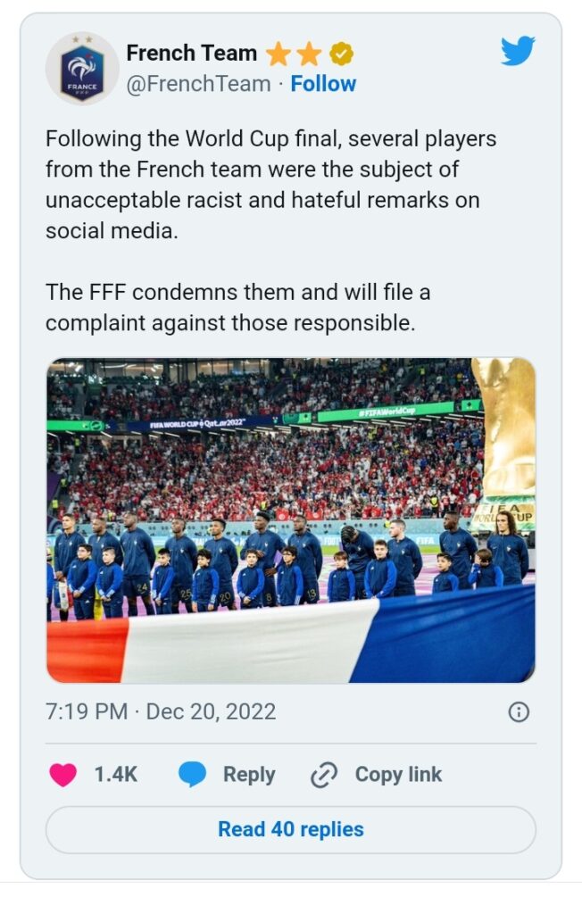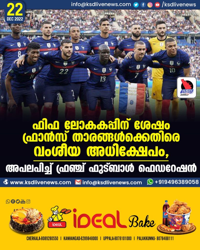 ഫിഫ ലോകകപ്പിന് ശേഷം ഫ്രാന്‍സ് താരങ്ങള്‍ക്കെതിരെ വംശീയ അധിക്ഷേപം, അപലപിച്ച്‌ ഫ്രഞ്ച് ഫുട്ബാള്‍ ഫെഡറേഷന്‍