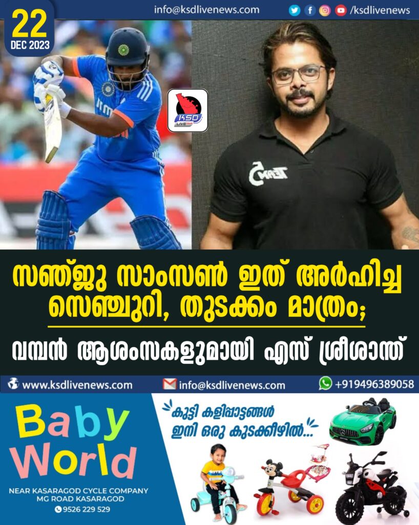 സഞ്ജു സാംസണ്‍… ‘ഇത് അർഹിച്ച സെഞ്ചുറി, തുടക്കം മാത്രം’; വമ്പന്‍ ആശംസകളുമായി എസ് ശ്രീശാന്ത്