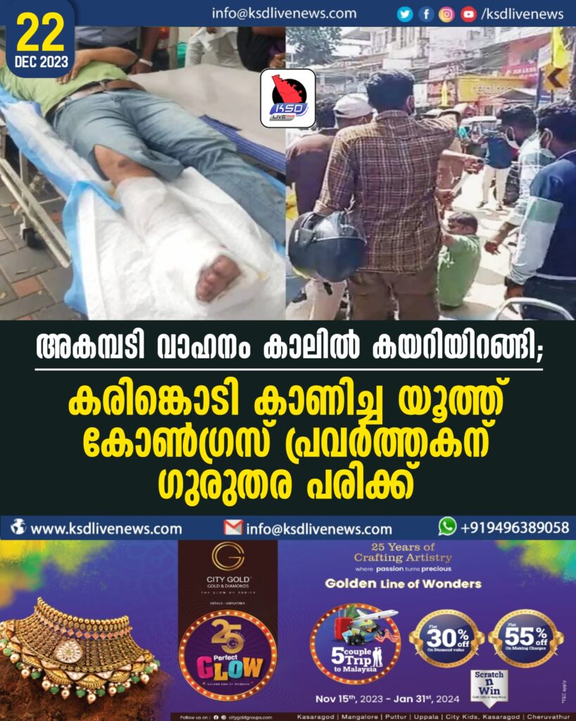 അകമ്പടി വാഹനം കാലില് കയറിയിറങ്ങി; കരിങ്കൊടി കാണിച്ച യൂത്ത് കോണ്ഗ്രസ് പ്രവര്ത്തകന് ഗുരുതര പരിക്ക്