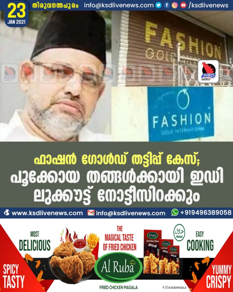 ഫാഷൻ ഗോൾഡ് തട്ടിപ്പ് കേസ് ; പൂക്കോയ തങ്ങൾക്കായി ഇഡി ലുക്കൗട്ട് നോട്ടീസിറക്കും