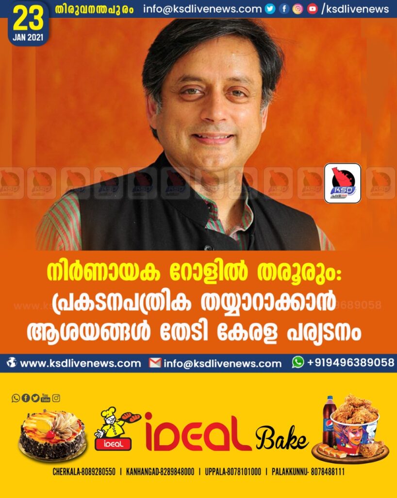 നിര്ണായക റോളില് തരൂരും: പ്രകടനപത്രിക തയ്യാറാക്കാന് ആശയങ്ങള് തേടി കേരള പര്യടനം