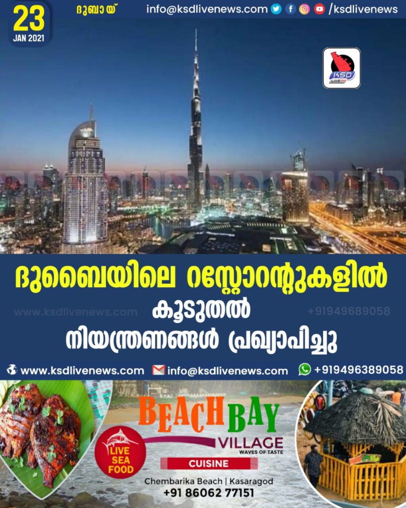 ദുബൈയിലെ റസ്റ്റോറന്റുകളിൽ കൂടുതൽ നിയന്ത്രണങ്ങൾ പ്രഖ്യാപിച്ചു
