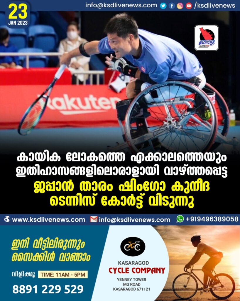 കായിക ലോകത്തെ എക്കാലത്തെയും ഇതിഹാസങ്ങളിലൊരാളായി വാഴ്ത്തപ്പെട്ട ജപ്പാന് താരം ഷിംഗോ കുനീദ ടെന്നിസ് കോര്ട്ട് വിടുന്നു.വീല്ചെയറിലിരുന്ന് 50 ഗ്രാന്ഡ്സ്ലാം കിരീടങ്ങളും നാല് പാരാലിമ്ബിക് സ്വര്ണവുമുള്പ്പെടെ എണ്ണമറ്റ നേട്ടങ്ങളിലേക്ക് റാക്കറ്റ് പായിച്ചാണ് സുവര്ണ താരത്തിന്റെ മടക്കം. വിരമിക്കുമ്ബോഴും ലോക ഒന്നാം നമ്ബര് പദവിക്കാരനെന്ന അപൂര്വ ചരിത്രവും ഷിംഗോക്കൊപ്പം.