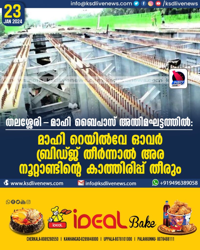 തലശ്ശേരി- മാഹി ബൈപാസ് അന്തിമഘട്ടത്തില്: മാഹി റെയില്വേ ഓവര് ബ്രിഡ്ജ് തീര്ന്നാല് അര നൂറ്റാണ്ടിന്റെ കാത്തിരിപ്പ് തീരും