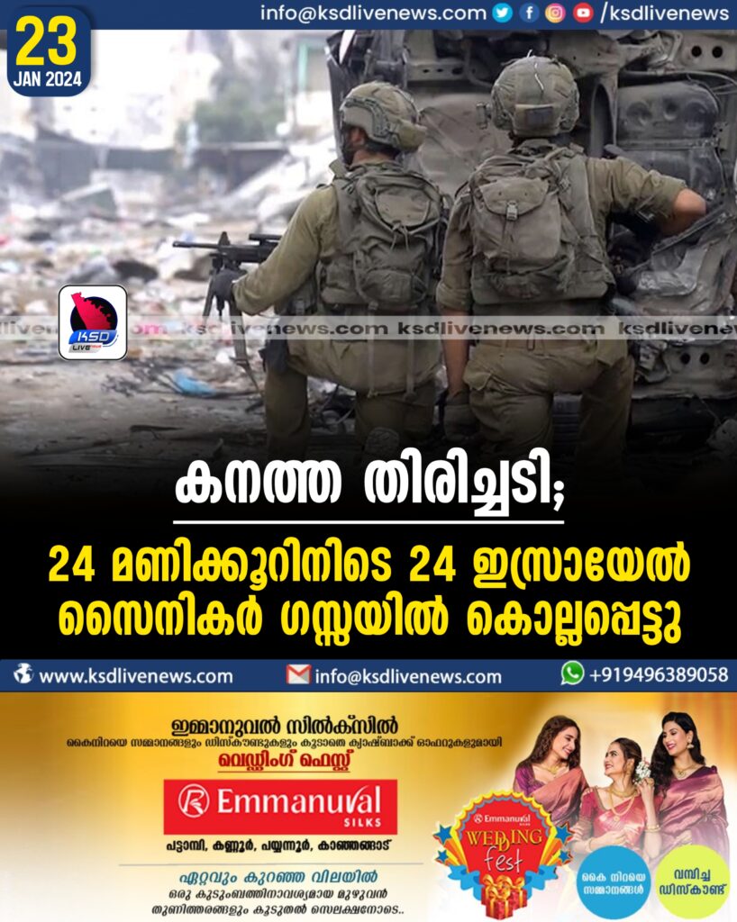 കനത്ത തിരിച്ചടി; 24 മണിക്കൂറിനിടെ 24 ഇസ്രായേല് സൈനികര് ഗസ്സയില് കൊല്ലപ്പെട്ടു