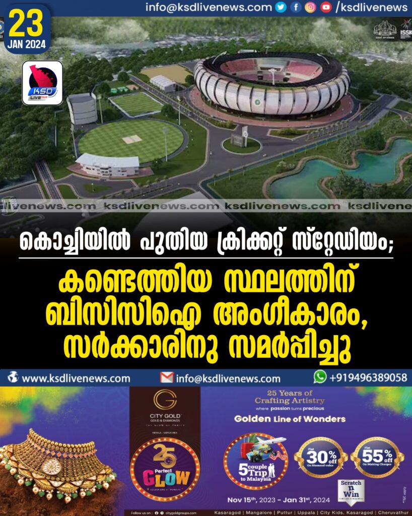 കൊച്ചിയിൽ പുതിയ ക്രിക്കറ്റ് സ്റ്റേഡിയം; കണ്ടെത്തിയ സ്ഥലത്തിന് ബിസിസിഐ അംഗീകാരം, സർക്കാരിനു സമർപ്പിച്ചു