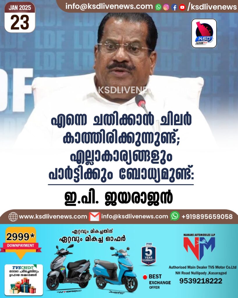 എന്നെ ചതിക്കാൻ ചിലർ കാത്തിരിക്കുന്നുണ്ട്; എല്ലാകാര്യങ്ങളും പാർട്ടിക്കും ബോധ്യമുണ്ട്: ഇ.പി. ജയരാജൻ