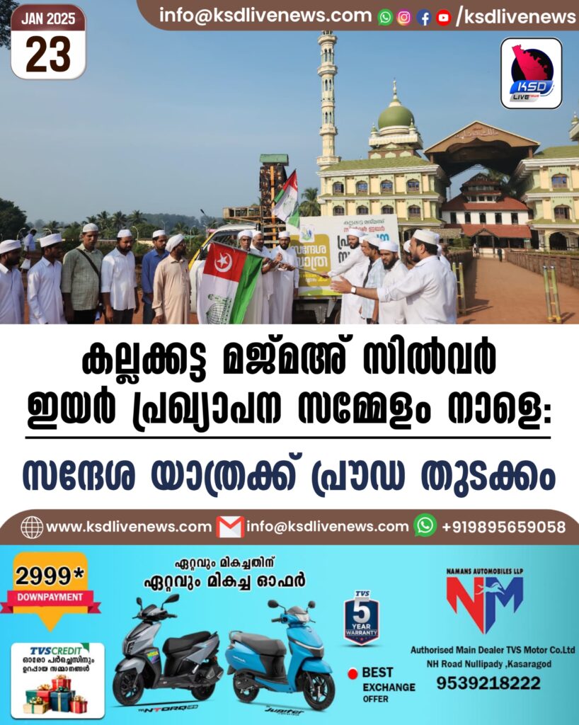 കല്ലക്കട്ട മജ്മഅ് സിൽവർ ഇയർ പ്രഖ്യാപന സമ്മേളം നാളെ: സന്ദേശ യാത്രക്ക് പ്രൗഡ തുടക്കം