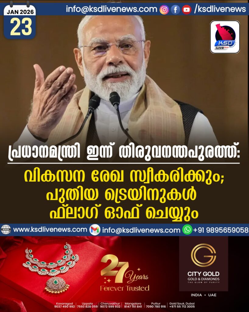 പ്രധാനമന്ത്രി ഇന്ന് തിരുവനന്തപുരത്ത്; വികസന രേഖ സ്വീകരിക്കും, പുതിയ ട്രെയിനുകൾ ഫ്ലാഗ് ഓഫ് ചെയ്യും