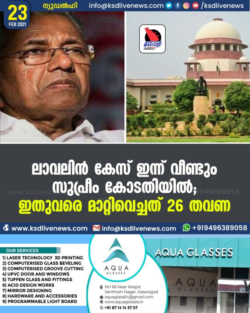 ലാവലിൻ കേസ് ഇന്ന് വീണ്ടും സുപ്രീംകോടതിയിൽ; ഇതുവരെ മാറ്റിവെച്ചത് 26 തവണ