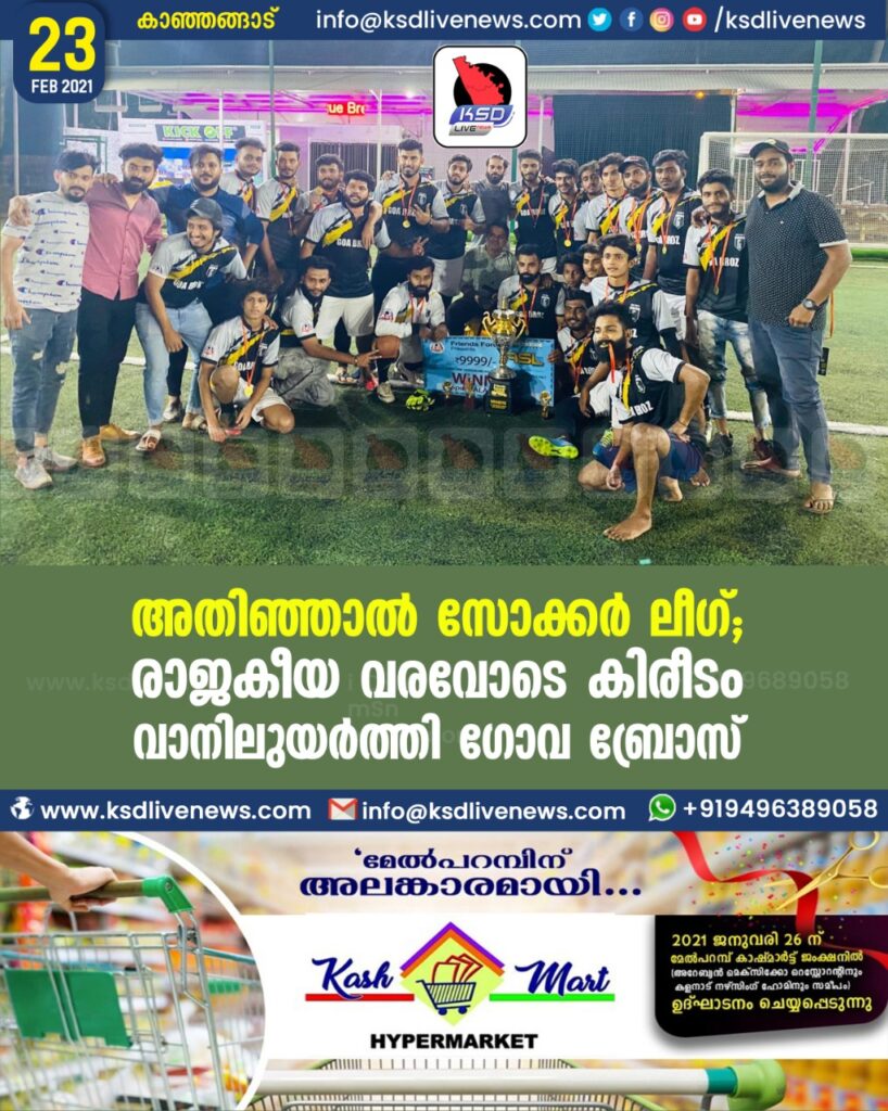 അതിഞ്ഞാൽ സോക്കർ ലീഗ്; രാജകീയ വരവോടെ കിരീടം വാനിലുയർത്തി ഗോവ ബ്രോസ്