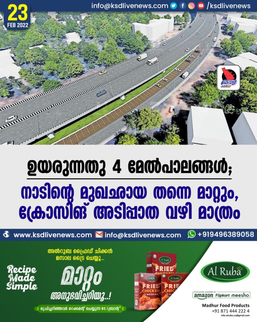 ഉയരുന്നതു 4 മേൽപാലങ്ങൾ; നാടിന്റെ മുഖഛായ തന്നെ മാറ്റും, ക്രോസിങ് അടിപ്പാത വഴി മാത്രം…