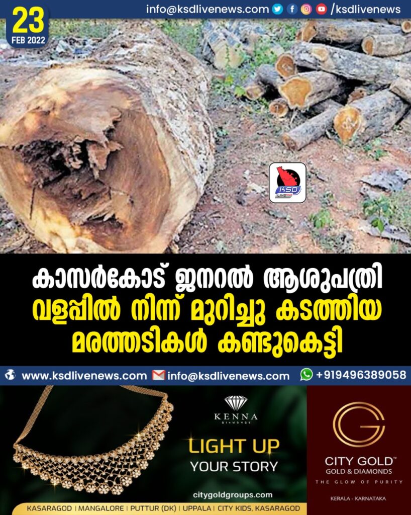 കാസർകോട് ജനറൽ ആശുപത്രി വളപ്പിൽ നിന്ന് മുറിച്ചു കടത്തിയ മരത്തടികൾ കണ്ടുകെട്ടി