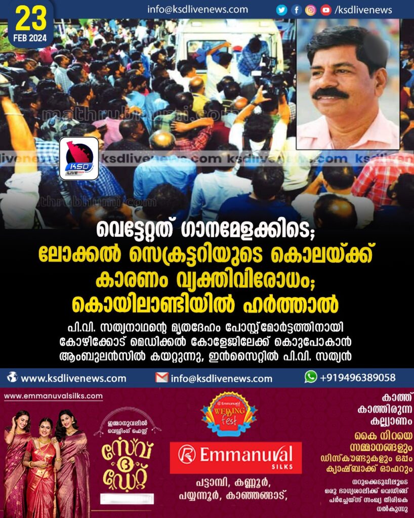 വെട്ടേറ്റത് ഗാനമേളക്കിടെ: ലോക്കൽ സെക്രട്ടറിയുടെ കൊലയ്ക്ക് കാരണം വ്യക്തിവിരോധം; കൊയിലാണ്ടിയിൽ ഹർത്താൽ