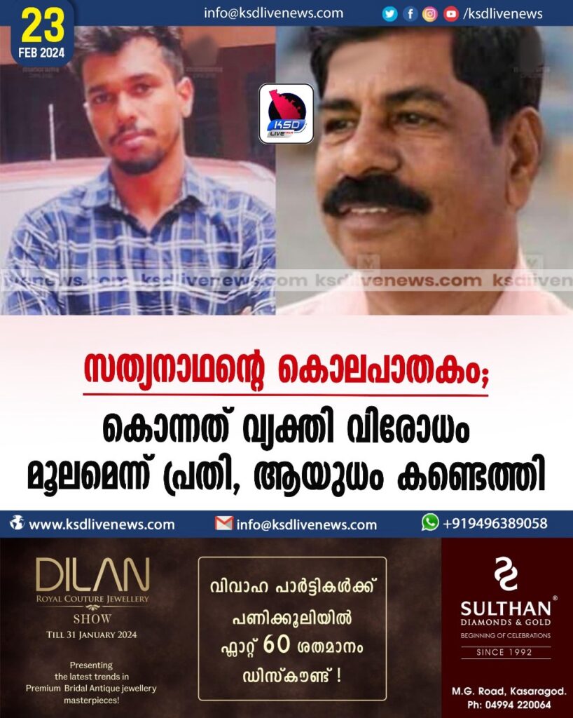 സത്യനാഥന്റെ കൊലപാതകം: കൊന്നത് വ്യക്തി വിരോധം മൂലമെന്ന് പ്രതി, ആയുധം കണ്ടെത്തി