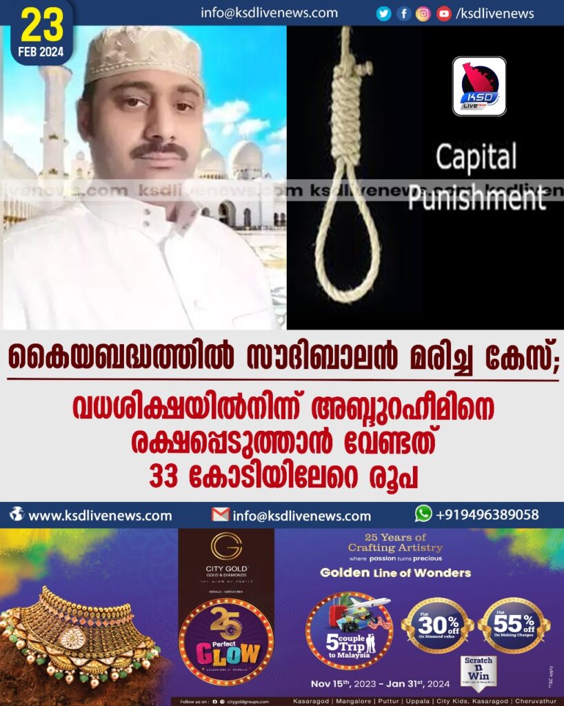 കൈയബദ്ധത്തില് സൗദി ബാലൻ മരിച്ച കേസ്; വധശിക്ഷയില്നിന്ന് അബ്ദുറഹീമിനെ രക്ഷപ്പെടുത്താൻ വേണ്ടത് 33 കോടിയിലേറെ രൂപ