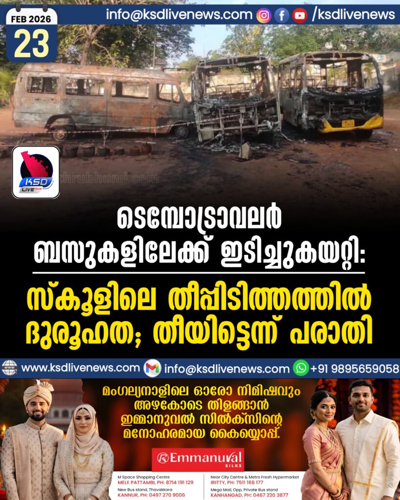 ടെമ്പോട്രാവലർ ബസുകളിലേക്ക് ഇടിച്ചുകയറ്റി; സ്കൂളിലെ തീപ്പിടിത്തത്തിൽ ദുരൂഹത; തീയിട്ടെന്ന് പരാതി