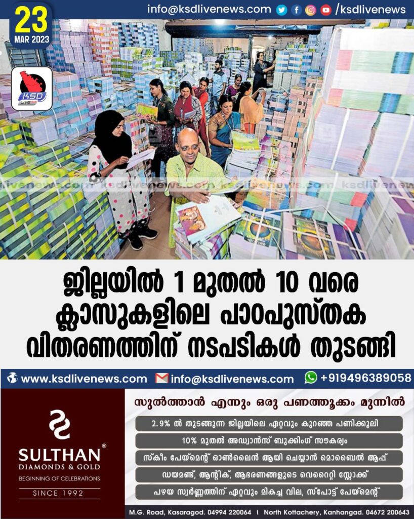 ജില്ലയിൽ 1 മുതൽ 10 വരെ ക്ലാസുകളിലെ പാഠപുസ്തക വിതരണത്തിന് നടപടികൾ തുടങ്ങി