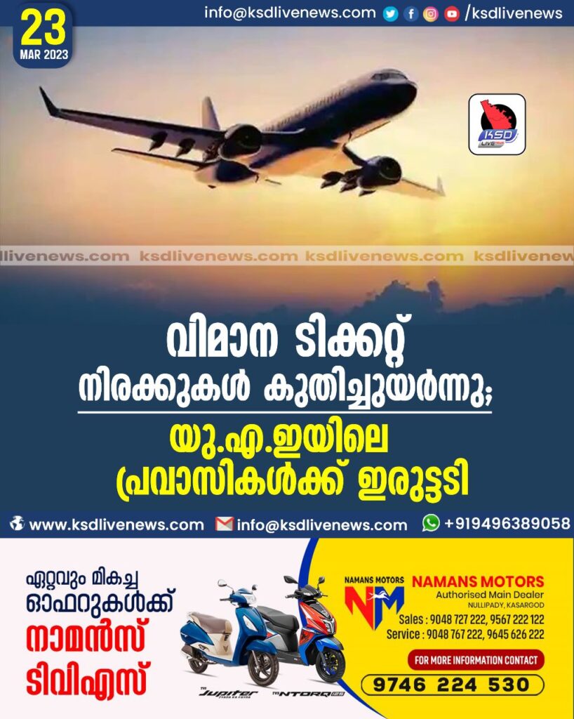 വിമാന ടിക്കറ്റ് നിരക്കുകള് കുതിച്ചുയര്ന്നു; യു.എ.ഇയിലെ പ്രവാസികള്ക്ക് ഇരുട്ടടി