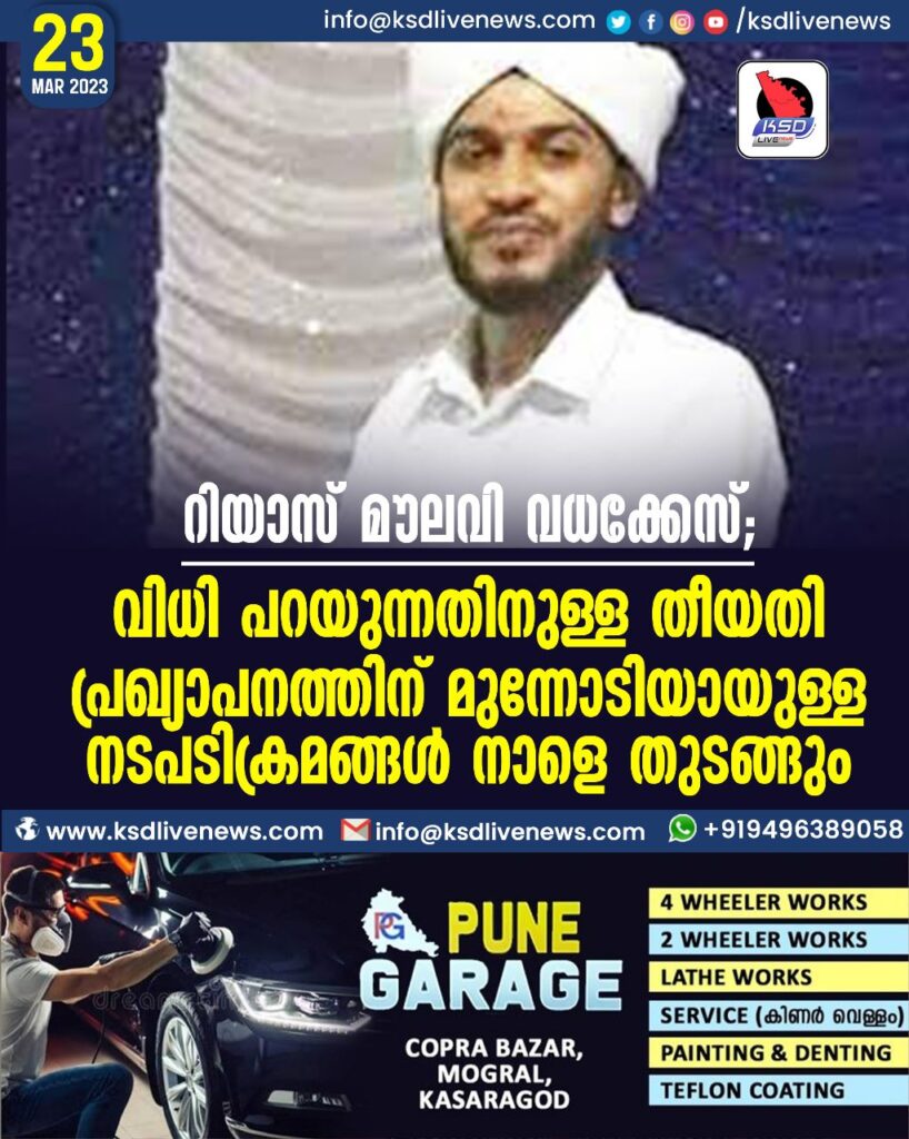 റിയാസ് മൗലവി വധക്കേസ്; വിധി പറയുന്നതിനുള്ള തീയതി പ്രഖ്യാപനത്തിന് മുന്നോടിയായുള്ള നടപടിക്രമങ്ങള് 24ന് തുടങ്ങും