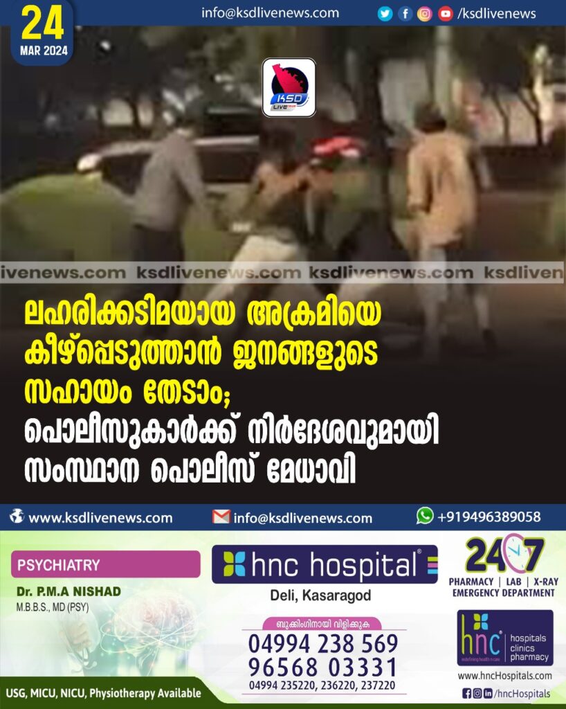 തിരുവനന്തപുരം:ലഹരിക്കടിമയായ അക്രമിയെ കീഴ്പ്പെടുത്താൻ പൊതുജനങ്ങളുടെ സഹായം തേടാമെന്ന് സംസ്ഥാന പൊലീസ് മേധാവി.