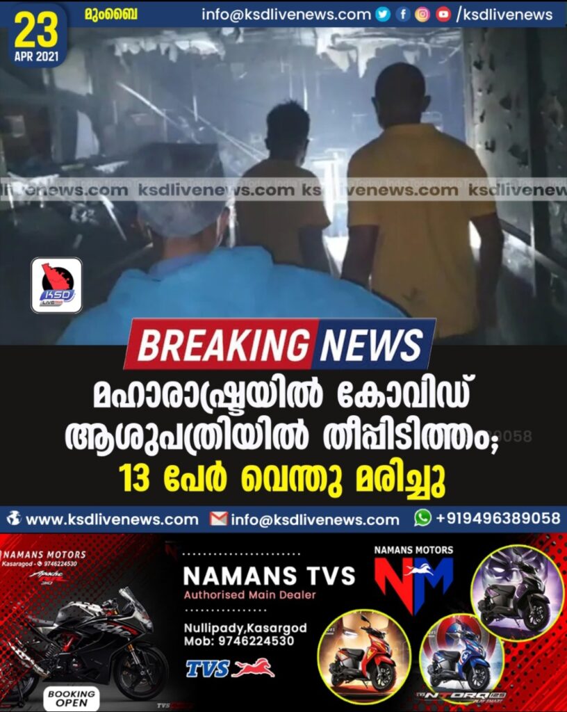 മഹാരാഷ്ട്രയില് കോവിഡ് ആശുപത്രിയില് തീപ്പിടിത്തം; 13 പേര് വെന്തു മരിച്ചു